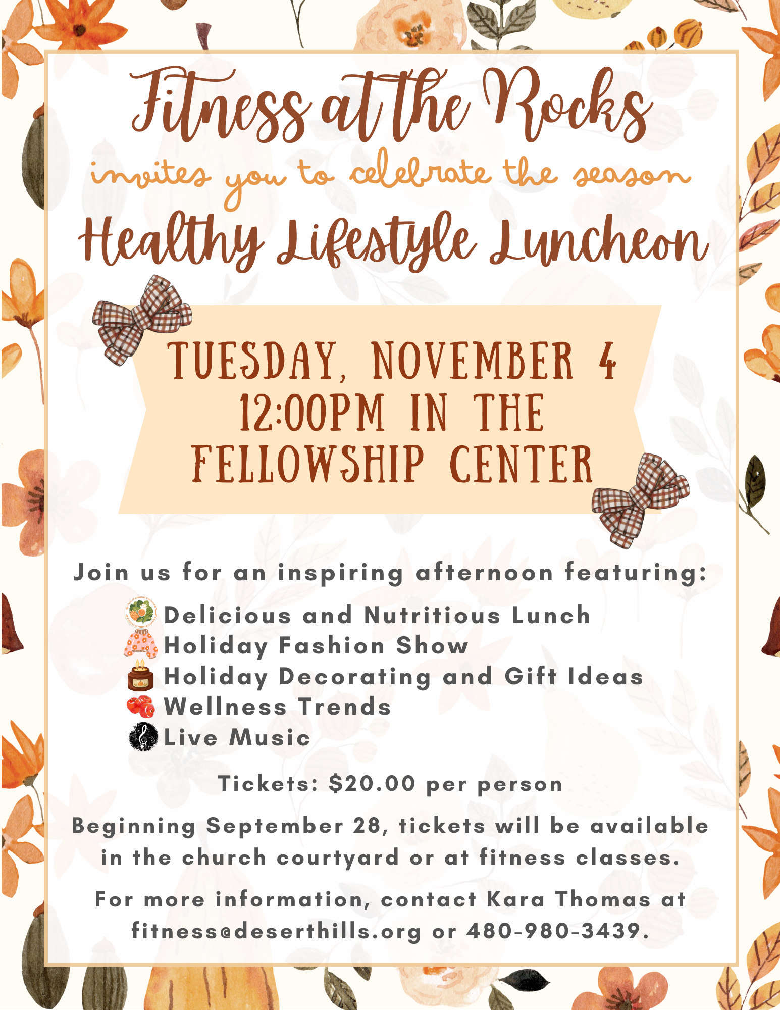 To sign up for all classes: Contact our Director of Health and Wellness at (480) 488-3384